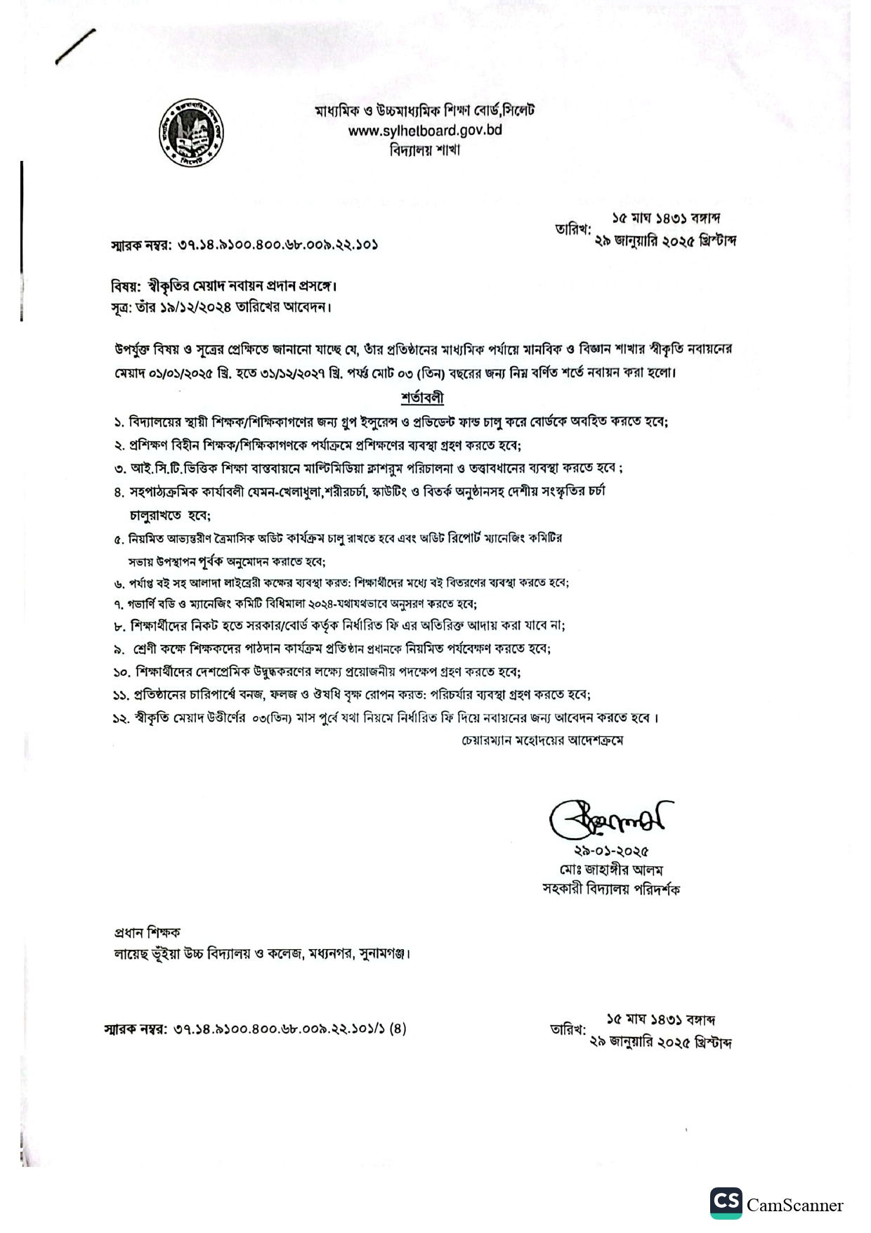 পাঠদানের অনুমতি ও স্বীকৃতি